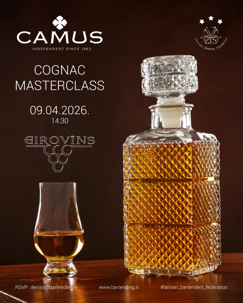 Latvijas Bārmeņu Federācija sadarbībā ar CAMUS un EIROVĪNS ielūdz Jūs uz ekskluzīvu un izzinošu pēcpusdienu, kas veltīta vienam no pasaulē atzītākajiem konjaka namiem.